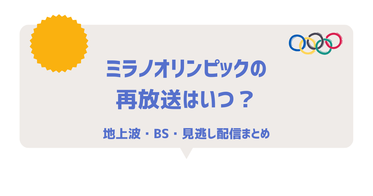 ミラノオリンピックを見逃してしまった人向けに、 無料で見られる見逃し配信サービスはあるのかをわかりやすくまとめました。 日本から視聴できる対応サービスや、フル視聴が可能かどうか、注意点まで解説します。 ミラノオリンピックの見逃し配信は日本か... -