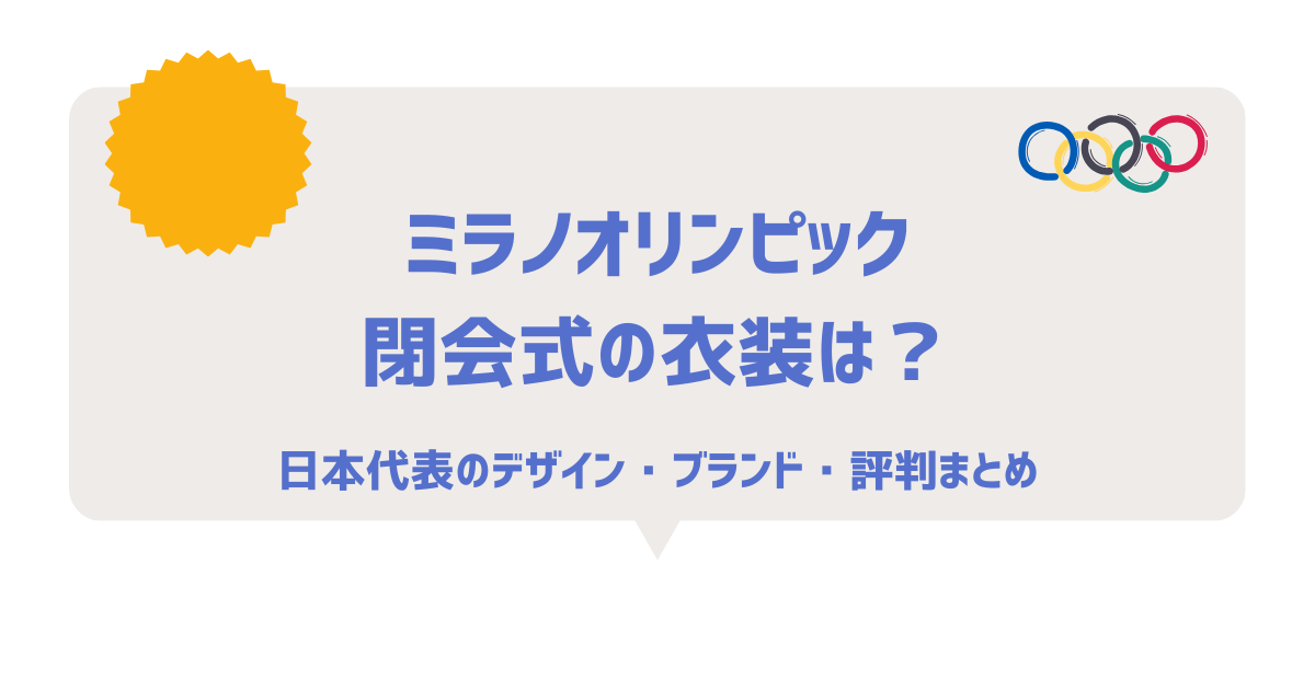 ミラノオリンピック閉会式の日本代表の衣装やユニフォームのブランド、SNSの評判が気になる方も多いのではないでしょうか? この記事ではミラノオリンピック閉会式の衣装デザイン・制作ブランド・実際の評価まで詳しくまとめています。 レプリカ購入情報も... -